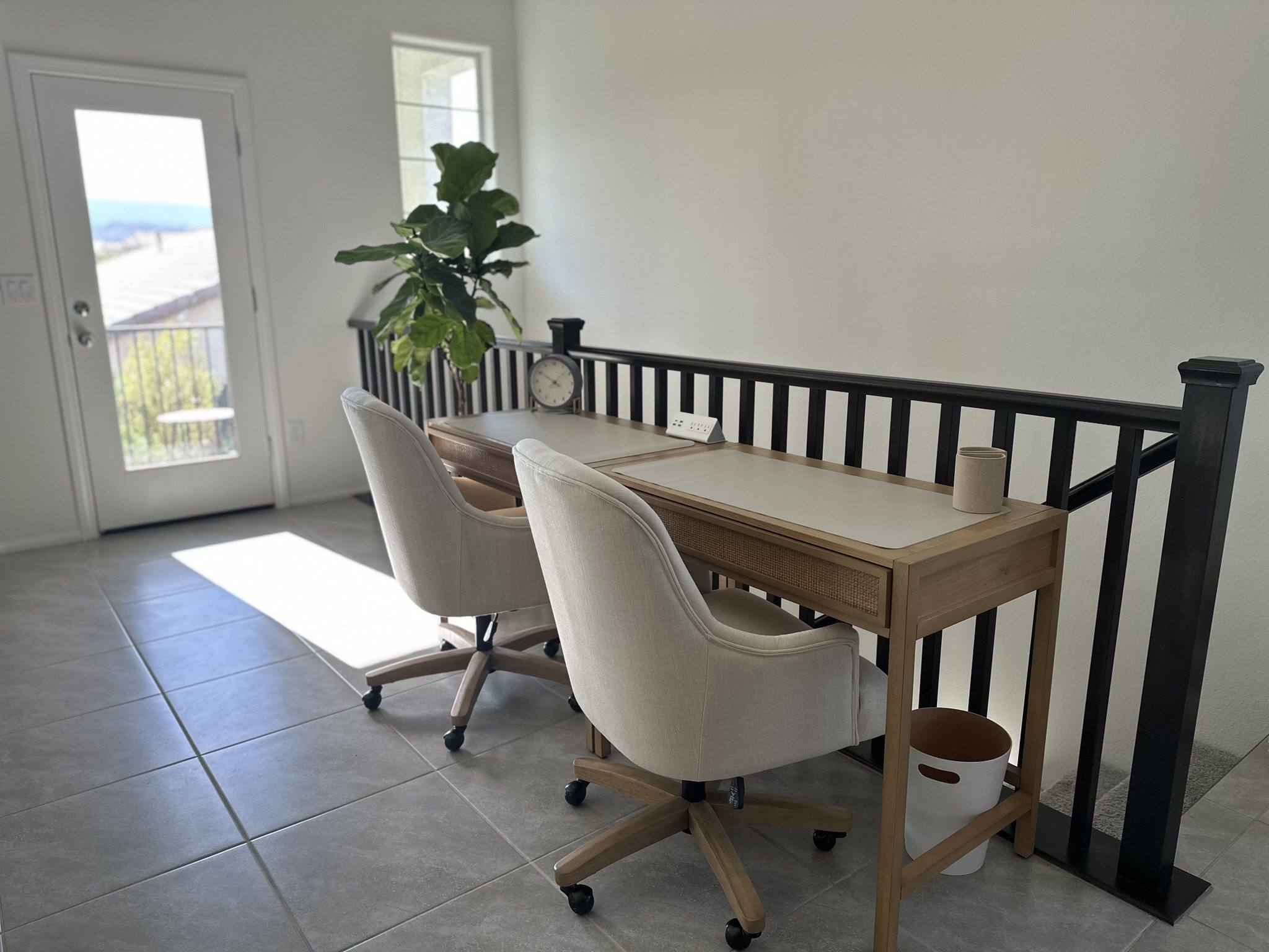 Dedicated Office Space: A separate office area caters to professionals seeking mid-term accommodations and offers a versatile setting for office-themed shoots.